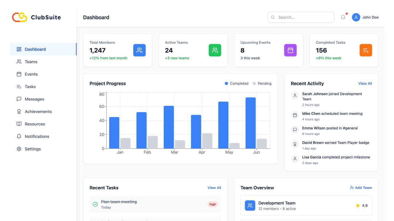 ClubSuite menyederhanakan pengelolaan klub dan tim, meningkatkan keterlibatan dan produktivitas anggota. Temukan serangkaian alat yang dirancang untuk menyederhanakan operasional Anda.