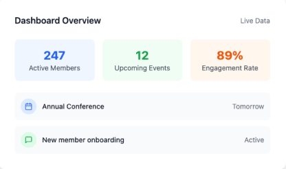 Sederhanakan operasional klub Anda dengan platform intuitif kami. Tingkatkan keterlibatan anggota dan sederhanakan komunikasi dengan mudah.